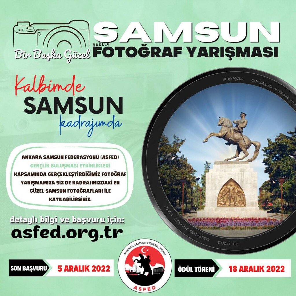 18 ARALIK'TA ANKARA'DA BULUŞUYORUZOsman Yılmaz, şöyle konuştu; "Bize düşen ise; küçücük dokunuşlarla bu güzelliklerimizi öne çıkarmak, Samsun'u yerli ve yabancı konukların gezip görebileceği 'Turizm Cenneti'ne çevirmek. Ankara Samsun Federasyonu (ASFED) olarak Milli Mücadele'nin meşalesinin yakıldığı 'İlk Adım Kenti' Samsun için kolları sıvadık, çalışıyoruz. 22 şehirde örgütlendik, tek hedemiz Samsun'u dünyaya tanıtmak. Müthiş bir şölene hazırlanıyoruz. 18 Aralık Pazar günü Ankara'da 'Samsun Gençlik Buluşması' düzenliyoruz. Organizasyon içinde fotoğraf, resim ve şiir yarışması olacak. İsteyen herkes Samsun'la ilgili hissettiklerini şiire dökecek, isteyen resim yapacak isteyen ise çektiği fotoğrafla katılacak. Ama her bir yerinde buram buram Samsun kokacak. İşin güzel yanı; tüm bu çalışmalar albüm haline getirilip, tanıtıma katkı sağlayacak her yere dağıtılacak."
