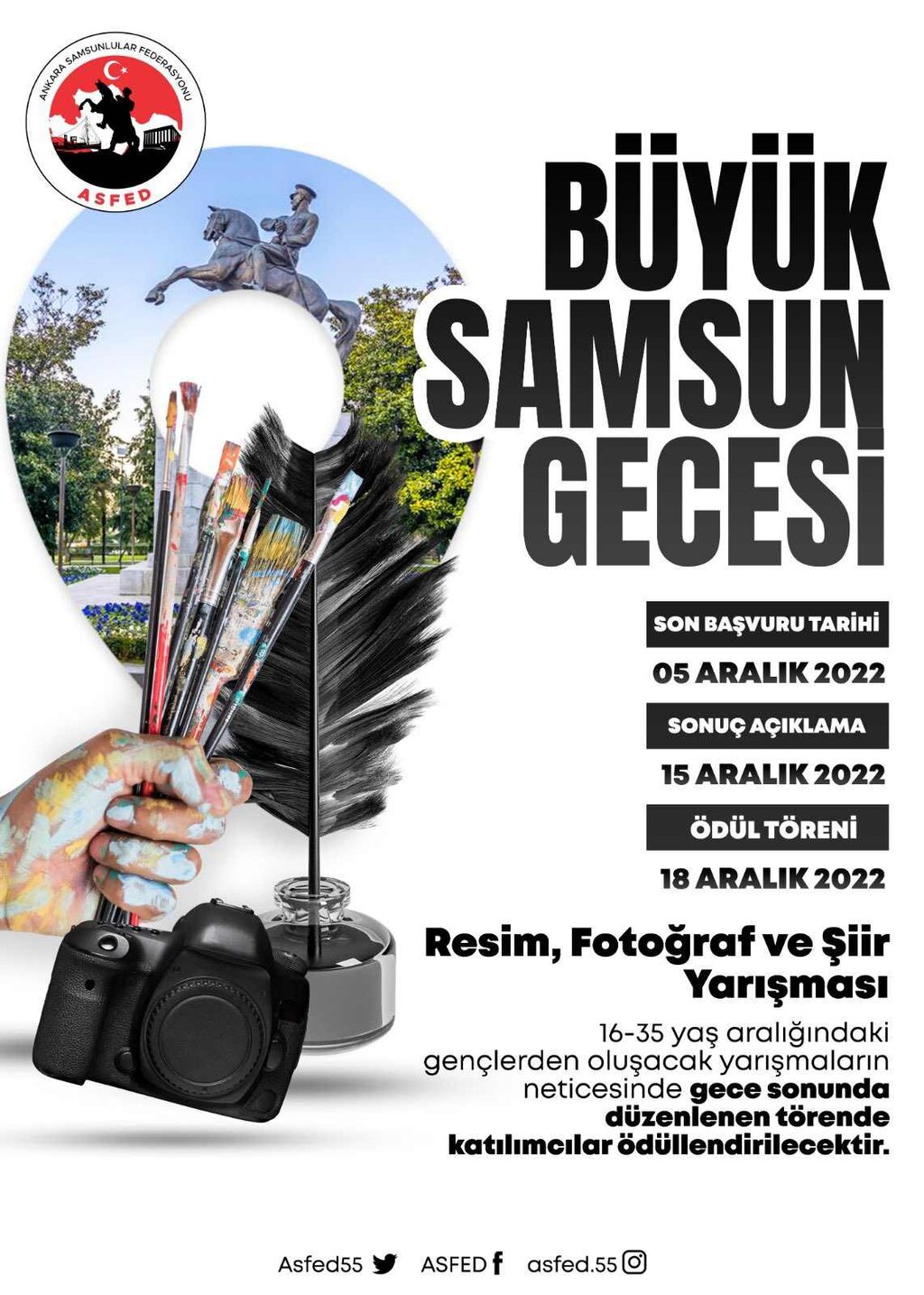 Ankara Samsun Federasyonu (ASFED), 18 Aralık Pazar günü Ankara ATO Congresium Kongre ve Sergi Merkezi'nde 'Samsun Gençlik Buluşması' etkinliği gerçekleştirecek. Fotoğraf, şiir ve resim yarışmalarının düzenleneceği ve ünlü sanatçı Haluk Levent'in konser vereceği büyük organizasyonun tanıtımı Samsun'da; ASFED Genel Başkanı Osman Yılmaz tarafından yapıldı.Aynı zamanda Ankara Samsun Sanayici, İş Adamı ve Yöneticileri Derneği (ASİYAD) Başkanı ve Samsun Sivil Toplum Kuruluşları Konfederasyonu (SAMKON) Genel Başkanvekili de olan Osman Yılmaz, toplantı sonrasında HHALK Gazetesi'ne özel açıklamalarda bulundu.