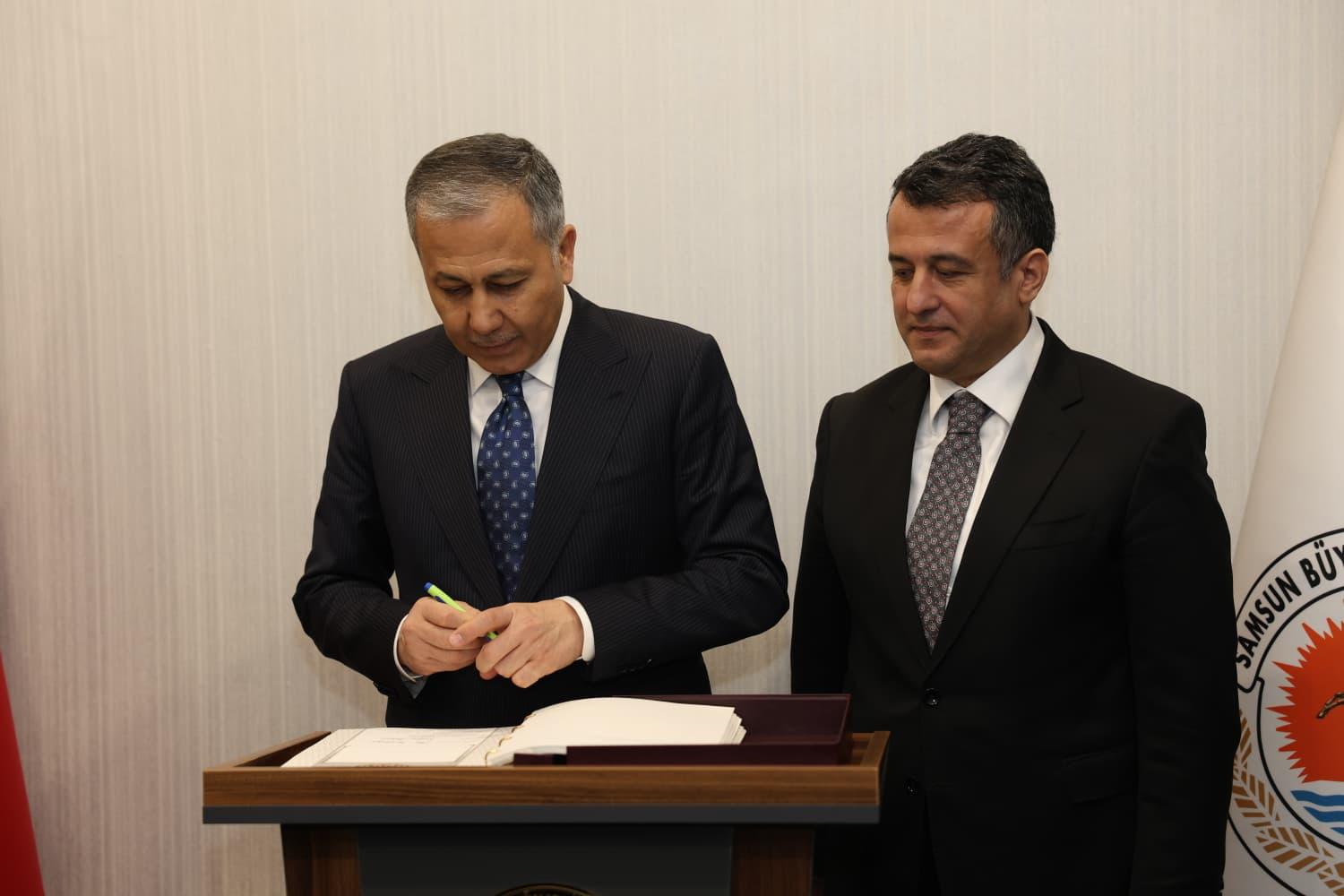 Bir dizi program kapsamında Samsun’a gelen İçişleri Bakanı Ali Yerlikaya, Samsun Büyükşehir Belediyesi’ni ziyaret etti. Bakan Yerlikaya, Büyükşehir Belediye Başkanı Halit Doğan ve belediye bürokratları tarafından karşılandı. Bakan Yerlikaya’ya Büyükşehir Belediyesi ziyaretinde Samsun Valisi Orhan Tavlı, TBMM Plan ve Bütçe Komisyonu Başkanı, AK Parti Samsun Milletvekili Mehmet Muş, AK Parti Samsun Milletvekili Orhan Kırcalı, AK Parti Samsun İl Başkanı Mehmet Köse de eşlik etti.