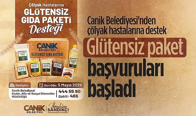 Canik Belediyesi'nin glütensiz gıda paketi desteğinin yeni dönemi için başvuru süreci başladı. Canik'te ikamet eden Çölyak hastası vatandaşlar, 5 Mayıs 2026 tarihine kadar belediyenin Kadın, Aile ve Sosyal Hizmetler Müdürlüğü üzerinden başvuru işlemlerini gerçekleştirebilecek.