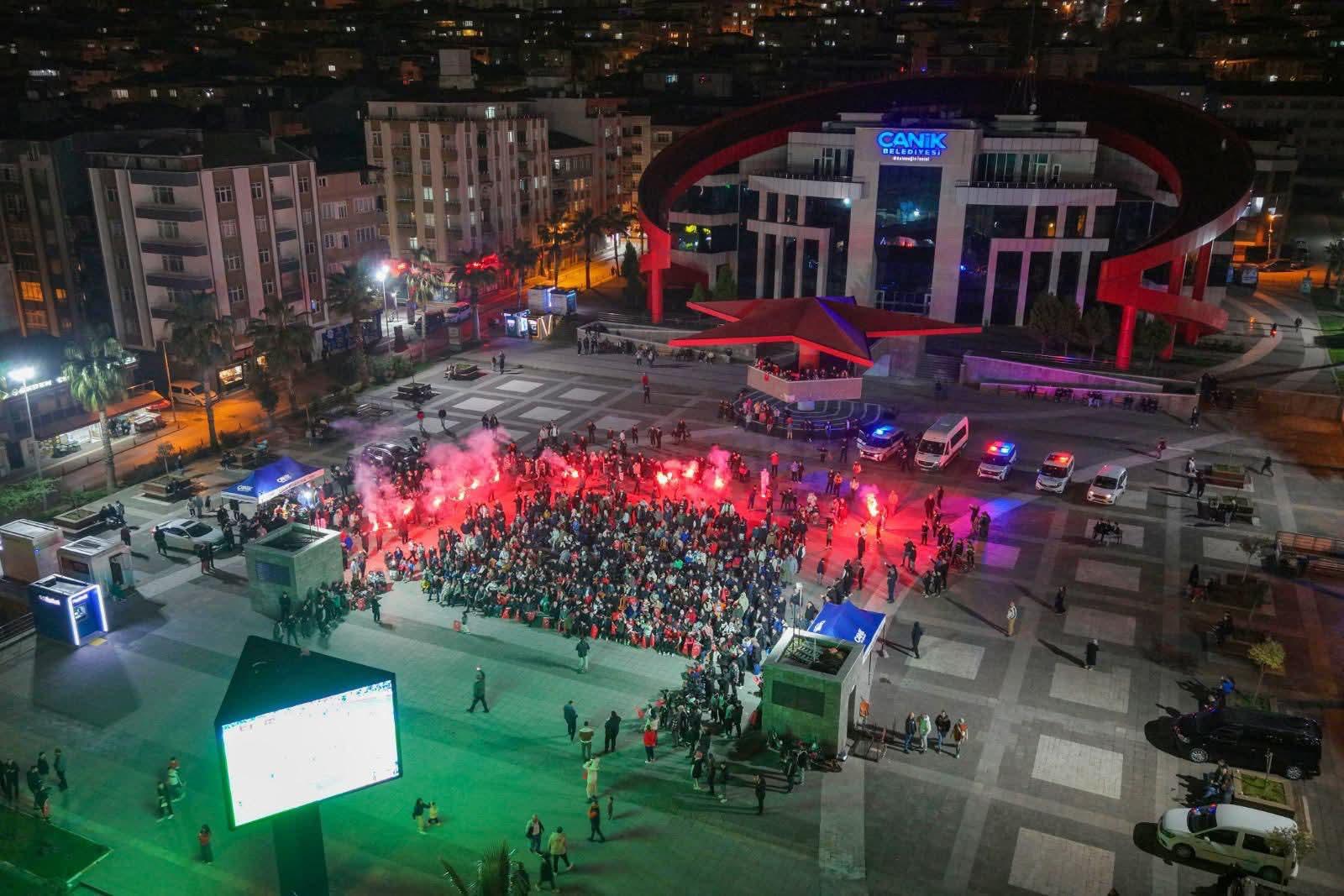Maçın başlama düdüğünden saatler önce meydanı dolduran Canikli vatandaşlar ve gençler, ellerinde Türk bayraklarıyla milli heyecana ortak oldu. Tezahüratlar ve milli takım marşlarıyla tribün ruhunun sokağa taşındığı gecede, Türkiye'nin Kosova'yı 1-0 mağlup ederek adını Dünya Kupası'na yazdırmasıyla büyük bir sevinç dalgası yaşandı. Canik Belediyesi, etkinlik boyunca alanı dolduran vatandaşlara çeşitli ikramlarda bulunarak maç keyfini ikiye katladı.