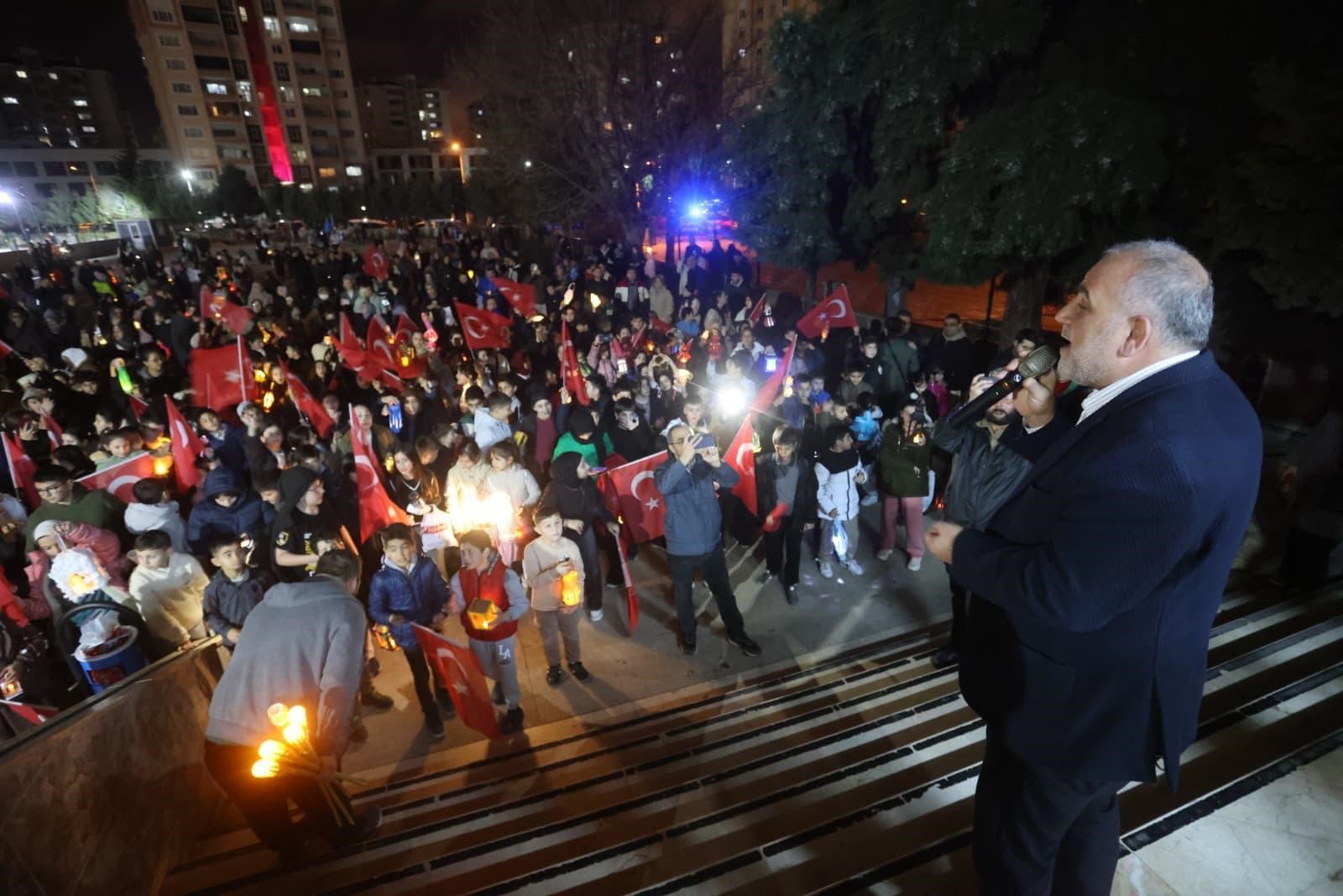 Canik Belediyesi, Kaymakamlık, İlçe Milli Eğitim Müdürlüğü ve İlçe Müftülüğü iş birliğiyle gerçekleştirilen "Ramazan'ı Karşılıyoruz: Fener Alayı ve İlk Teravih Namazı" programı ilçede bayram havası estirdi. Kuzey Yıldızı Ortaokulu önünden başlayan ve Yeşilova Camii’ne kadar süren yürüyüşe katılan her yaştan binlerce Canikli, ellerindeki fenerlerle sokakları aydınlatarak asırlık geleneği yeniden canlandırdı. Etkinlik, çocukların ve gençlerin hafızalarında iz bırakacak renkli görüntülere sahne oldu.