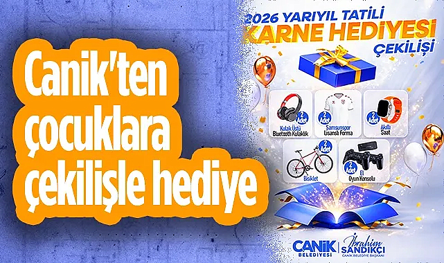 Samsun Canik Belediyesi, yarıyıl tatiline özel karne hediyesi çekilişi gerçekleştirerek öğrencilerin karne sevincine ortak olacak. 26 Ocak tarihine kadar başvuruların gerçekleştirilebileceği karne hediyesi çekilişiyle 2 adet Samsunspor lisanslı forma, 2 adet bisiklet, 2 adet kulak üstü Bluetooth kulaklık, 2 adet akıllı saat ve 2 adet el oyun konsolu sahibini bulacak.