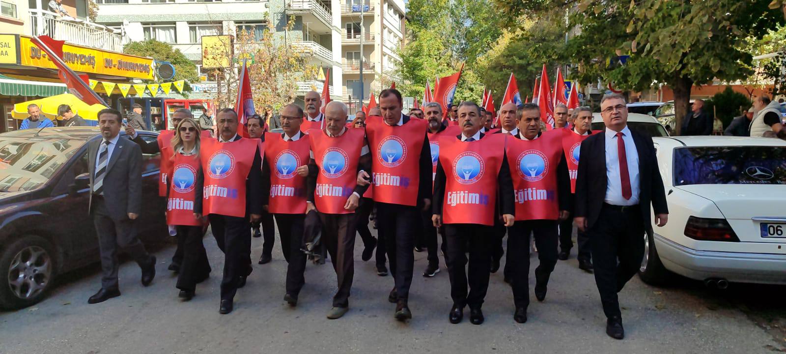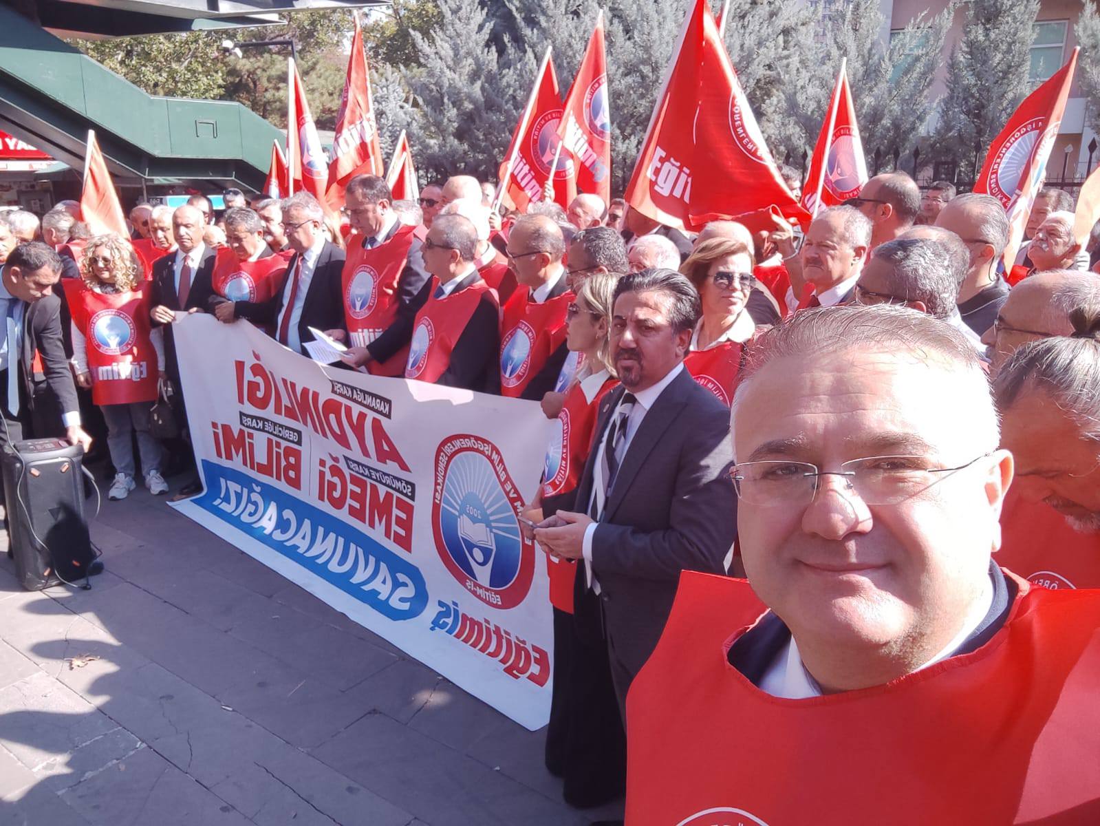 Eğitim ve Bilim İşgörenleri Sendikası (Eğitim-İş), 20’nci kuruluş yıldönümünü kapsamında çocukların geleceğini savunmak, kamusal eğitimi korumak ve Cumhuriyetin aydınlanmacı mirasına sahip çıkmak için Ankara’da Millî Eğitim Bakanlığı önünde açıklama yaptı.Eğitim-İş Genel Başkanı Kadem Özbay, Birleşik Kamu-İş Genel Başkanı Orhan Yıldırım, Kurucu Genel Başkanları Yüksel Adıbelli, Veli Demir ve Mehmet Balık’ın öncülüğünde gerçekleşen yürüyüşe Eğitim-İş Sendikası Samsun Şubesi yönetimi tam kadro katıldı.