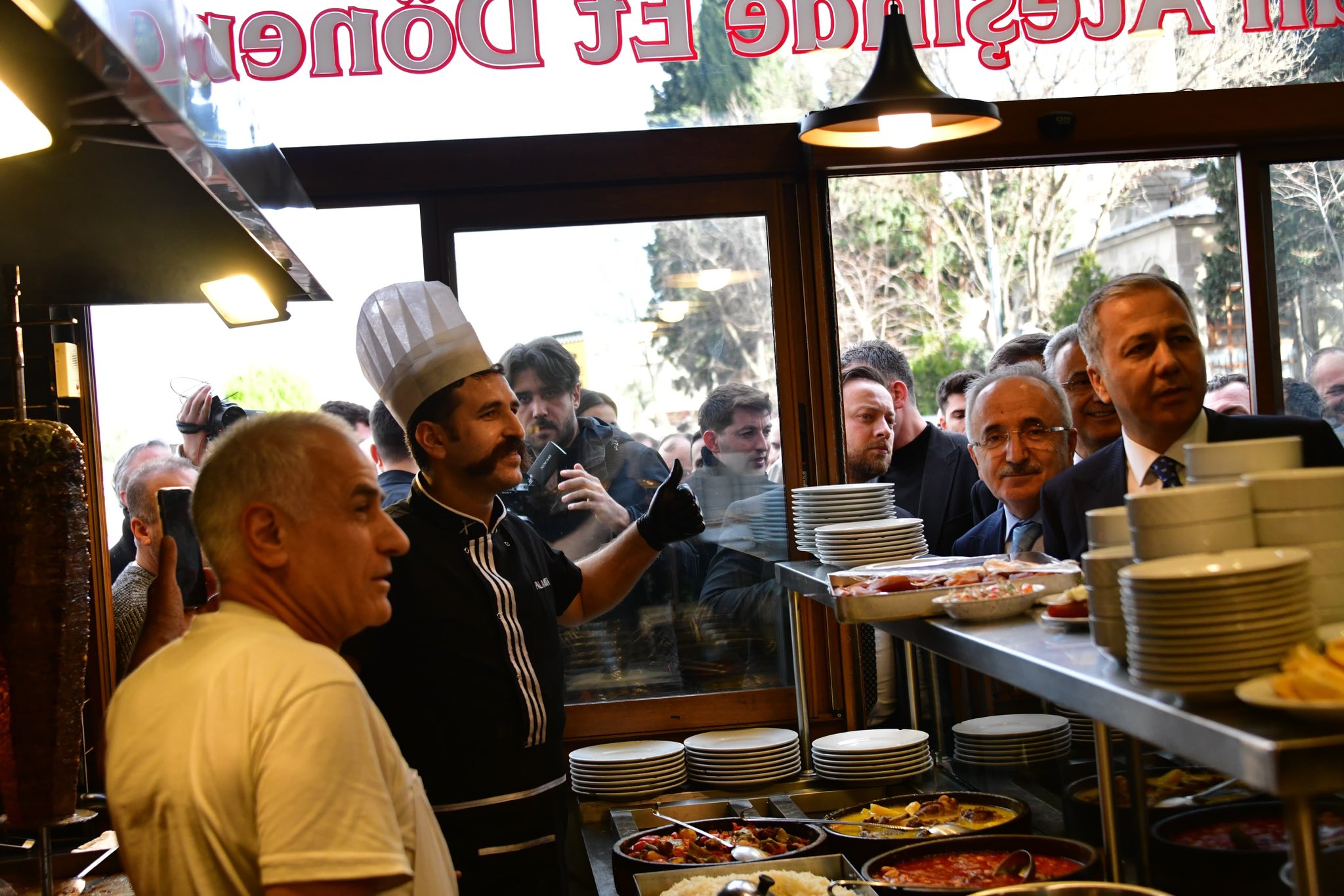 Bir lokantacıya da 'hayırlı işler' temennisinde bulunan Yerlikaya, pala bıyık bırakan döner ustasına ise, "Ne güzel sakal bıyık bırakmışsın, emekli olsam ben de senin gibi sakal bırakırdım" sözleriyle takıldı.
