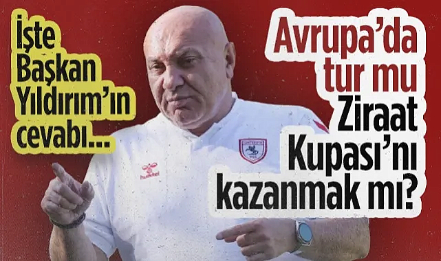 Başkan Yüksel Yıldırım, "Avrupa kupalarında tur atlamak mı, Türkiye Kupası’nı kazanmak mı?" şeklinde gelen soruyu ise, "İkisi birden diyeyim. Çünkü Avrupa’da hedefimiz çeyrek finaldi. Şu an son 16’dayız. Yarın önemli bir maçımız var. Kazanmak istiyoruz ve Madrid’e avantajlı gitmek istiyoruz. Bunu yapabilirsek Samsunspor tarihine geçeceğiz. Avrupa’nın devamlılığını getirmek için de Türkiye Kupası bizim için çok önemli" diye cevap verdi.