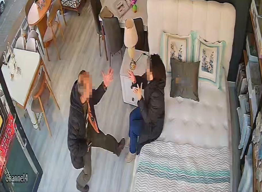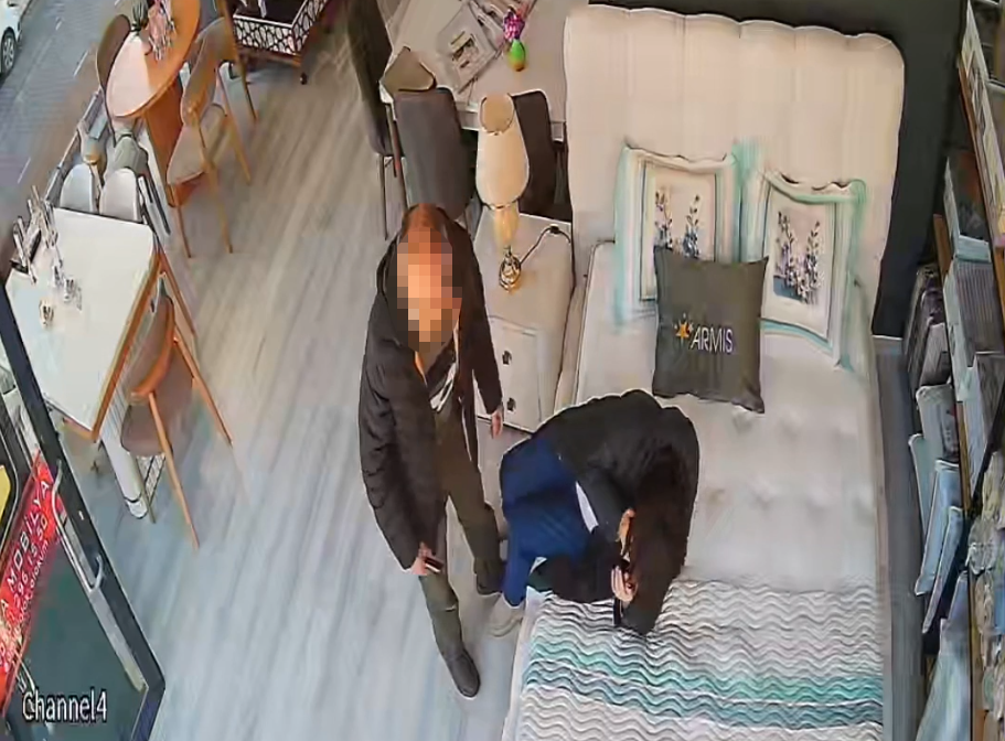 Tartışma sırasında üst üste eşine karşı fiziksel şiddet uygulayan F.D.’nin, mağazaya ait dizüstü bilgisayarı da birkaç kez masaya fırlatmak suretiyle zarar verdiği iddia edildi. Öğretmenin hem eşine uyguladığı fiziksel şiddet hem de mağazaya ait dizüstü bilgisayarını kırdığı görüntüler, güvenlik kamerası tarafından anbean kaydedildi.MOBİLYA SAHİBİ