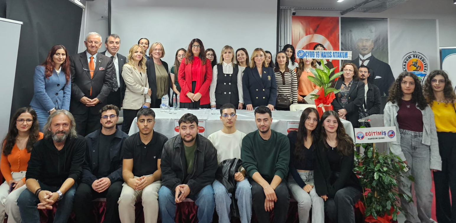 HUKUK VE SAĞLIKTA KADININ YERİPanelde konuşmacı olarak yer alan birbirinden önemli isimler, Cumhuriyetin kadınlara kazandırdığı devrimleri farklı alanlarda inceledi. Samsun Barosu Başkanı Av. Pınar Gürsel Yıldıran, Cumhuriyet’in modern bir toplum yarattığını ve Anadolu aydınlanmasını gerçekleştirdiğini vurguladı. Yıldıran, hukuk alanındaki büyük dönüşümlere dikkat çekerek, Türkiye’nin ilk kadın avukatı Süreyya Ağaoğlu’nu ve ilk kadın hakimi saygıyla andı.KADINLARIN MÜCADELESİ TARİHE NOT DÜŞÜLDÜSamsun Tabip Odası Başkanı ve Ondokuz Mayıs Üniversitesi (OMÜ) Öğretim Üyesi Prof. Dr. Hasibe Canan Seren ise, sağlık alanına odaklandı. Hasibe Seren, "Cumhuriyete can vermiş, kan vermiş, hayat vermiş kadın doktorları ve sağlık alanındaki öncü kadınları" anlatarak, onlara olan vefa borcumuzun unutulmaması gerektiğini dile getirdi.