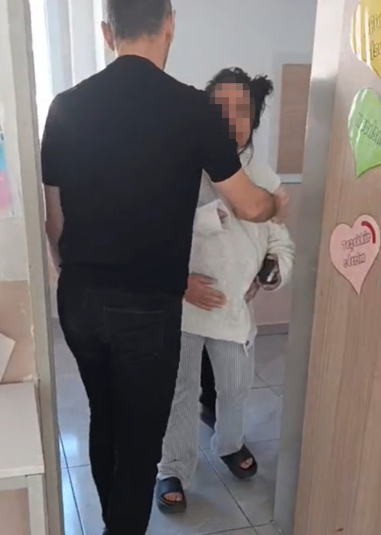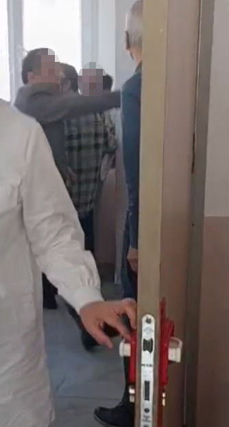 O sırada sınıf kapısının açılması üzerine tekme atmaya kalkışan veli, bir öğretmene yönelik küfür içeren sözlerle fiziksel şiddet uygulama girişiminde bulundu. O anlar sınıfta bulunan öğretmenler tarafından cep telefonuyla anbean görüntülendi.