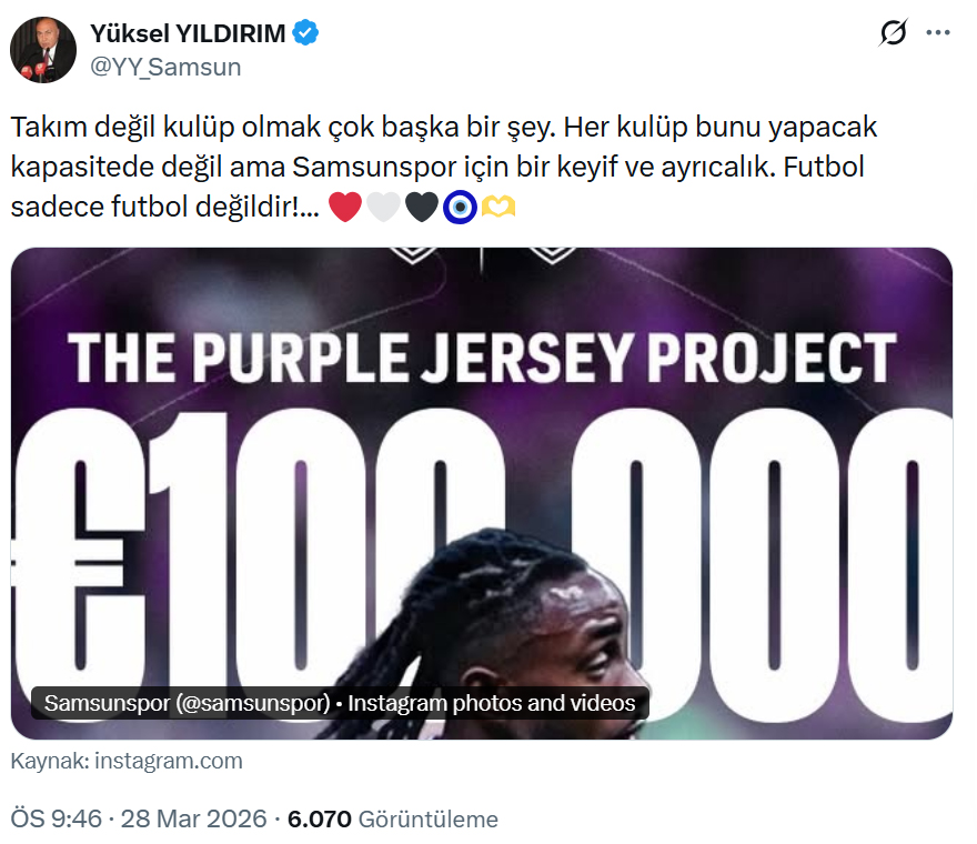 samsunspor için bir keyif ve ayrıcalık. Futbol sadece futbol değildir” ifadelerini kullandı.