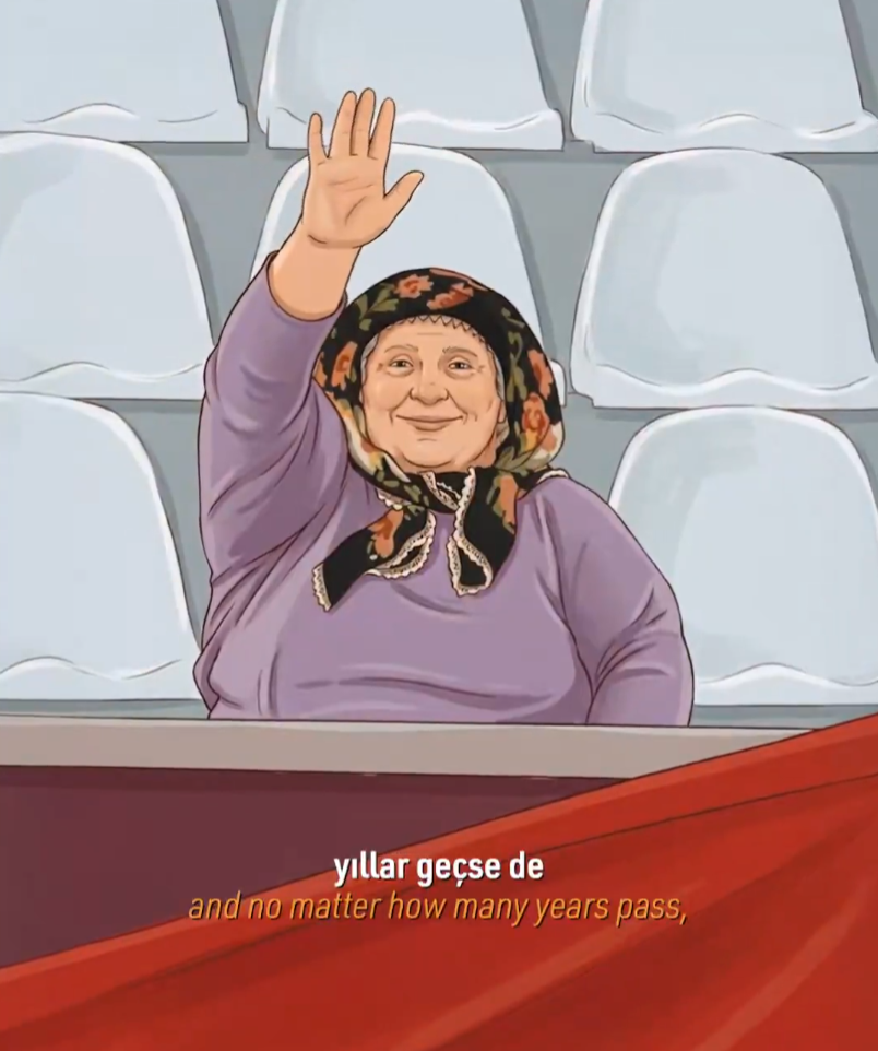 Videoda, Samsunspor'un iç saha maçlarını kaçırmayan Nevin Demirbağ (82) ve Gülten Sofuoğlu (71) ile kağıt toplayarak geçimini sağlayan ve Samsunspor'un yardım kampanyasına 555 TL bağışlayarak kampanyanın sembol isimlerinden biri olan Kibar Amca ve 1. Lig'e yükseldiğimiz sezonda 5 Aralık 2019'da "Pes etmek yok biz şampiyon olacağız" sosyal medya paylaşımını yapan ve trafik kazasında hayatını kaybeden Batuhan Yılmaz unutulmadı.