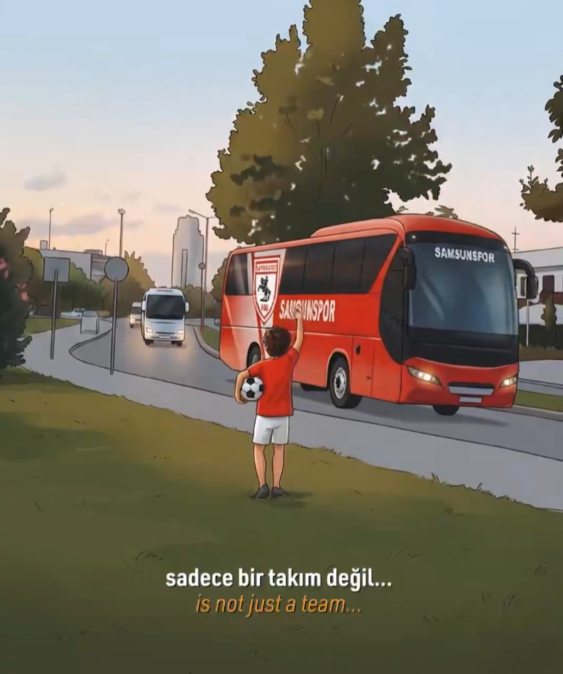 Videoda yapılan seslendirmede, "Samsun'da bazı hikayeler sessizce büyür. Yıllar geçse de eksilmez. O renkleri omuzlarında taşıyanlar aynı heyecanla hala aramızdalar. Bu kutsal arma sevgi ve fedakarlıkla büyür. Vazgeçmemek nesilden nesile aktarılan en güçlü mirastır. Samsunspor sadece bir takım değil, bir şehrin ruhudur. Bir ömrün en derin aidiyeti adanmışlığın ve tutkunun adıdır" ifadelerine yer verildi.
