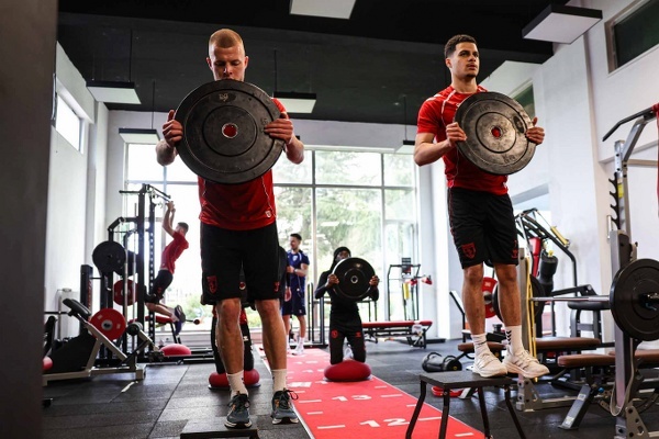 Nuri Asan Tesisleri’nde gerçekleştirilen günün ilk çalışması, futbolcuların fitness salonundaki kuvvet ve dayanıklılık antrenmanıyla başladı.