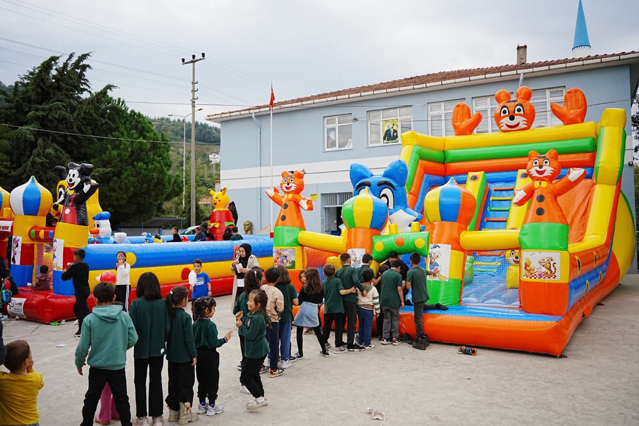 BİRLİKTE GÜLEN ÇOCUKLAR RENKLENEN MAHALLELER“Biz Geldik” projesi kapsamında okul bahçeleri oyun alanlarına ve etkinlik atölyelerine dönüştürüldü. Tiyatro gösterisinden sokak oyunlarına, etkinlik atölyelerinden şişme oyun gruplarına birçok seçenek çocuklarla buluştu.Gezici Kütüphane de okuldaki yerini aldı. Oyunlar, pamuk şekeri, mısır ikramı ve palyaço gösterisi ile çocukların yüzünde tebessüm oluşturuldu.