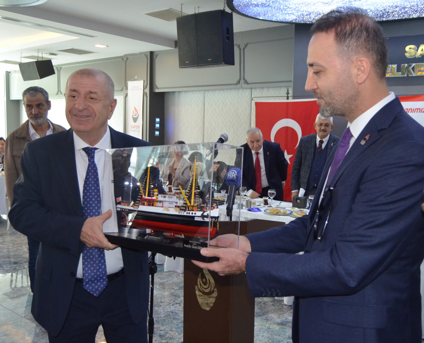 Zafer Partisi Samsun İl Başkanı Alperen Carus, günün anısına Genel Başkan Ümit Özdağ’a Bandırma Vapuru’nun maketini hediye etti. Gençlik kolları da Ümit Özdağ’a Atatürk temalı plaket ve tişört hediyesi takdim etti.