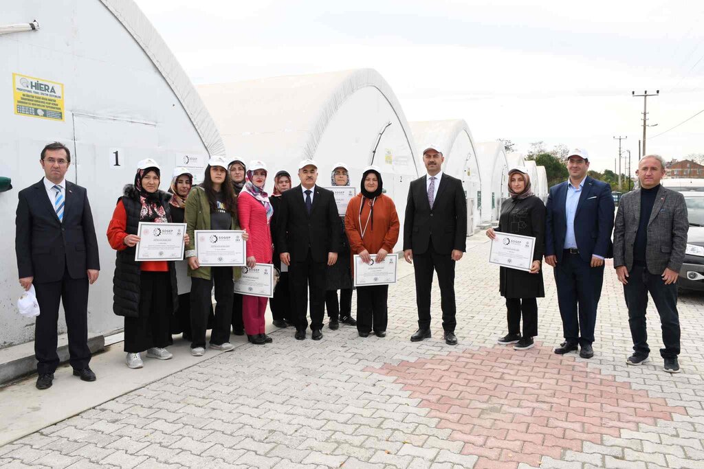 Özellikle kadın girişimcilerin iş sahibi olması amaçlanan ‘Alternatif Tarım ile İstihdam Katkı Projesi’ dahilinde istiridye mantarı üretim tesislerinde faaliyetler başlarken, mantar üretim tesisinde eğitimlerini tamamlayan kadın girişimciler, Vali Dağlı’dan sertifikalarını teslim aldılar.